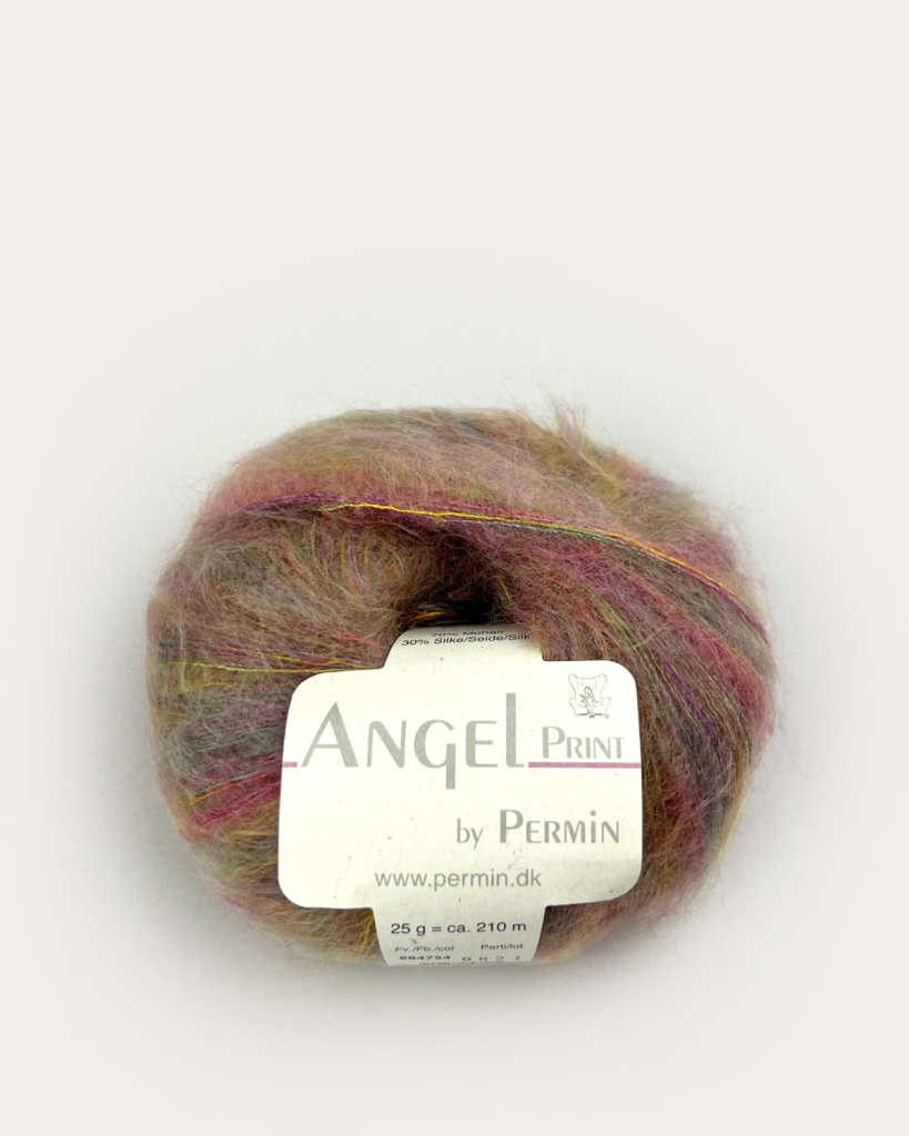 Mohairgarnet Angel Print 884751 Koral/Rust fra Permin, er et blødt og let blandingsgarn af mohair og silke. Angel Print 884751 Koral/Rust kan bruges alene eller som følgetråd sammen med andre typer af garn. Ulden til mohair kommer fra mohairgeden. Sådan en ged, skal klippes 2 gange om året og som oftest sendes ulden derefter til Sydafrika, hvor efterbehandlingen finder sted og derefter sælges på auktion.