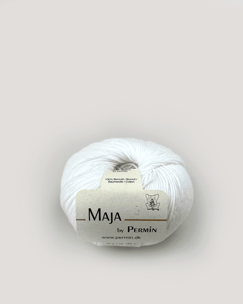 Maja by Permin er et yderst lækkert bomuldsgarn. Garnet er godt alene, eller sammen med Maja Color by Permin