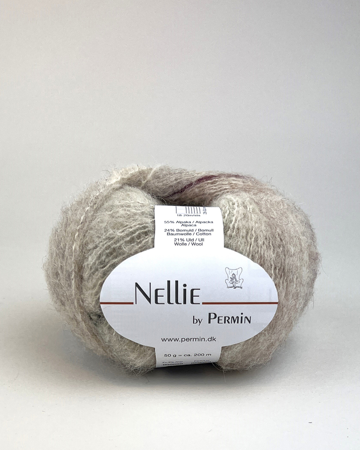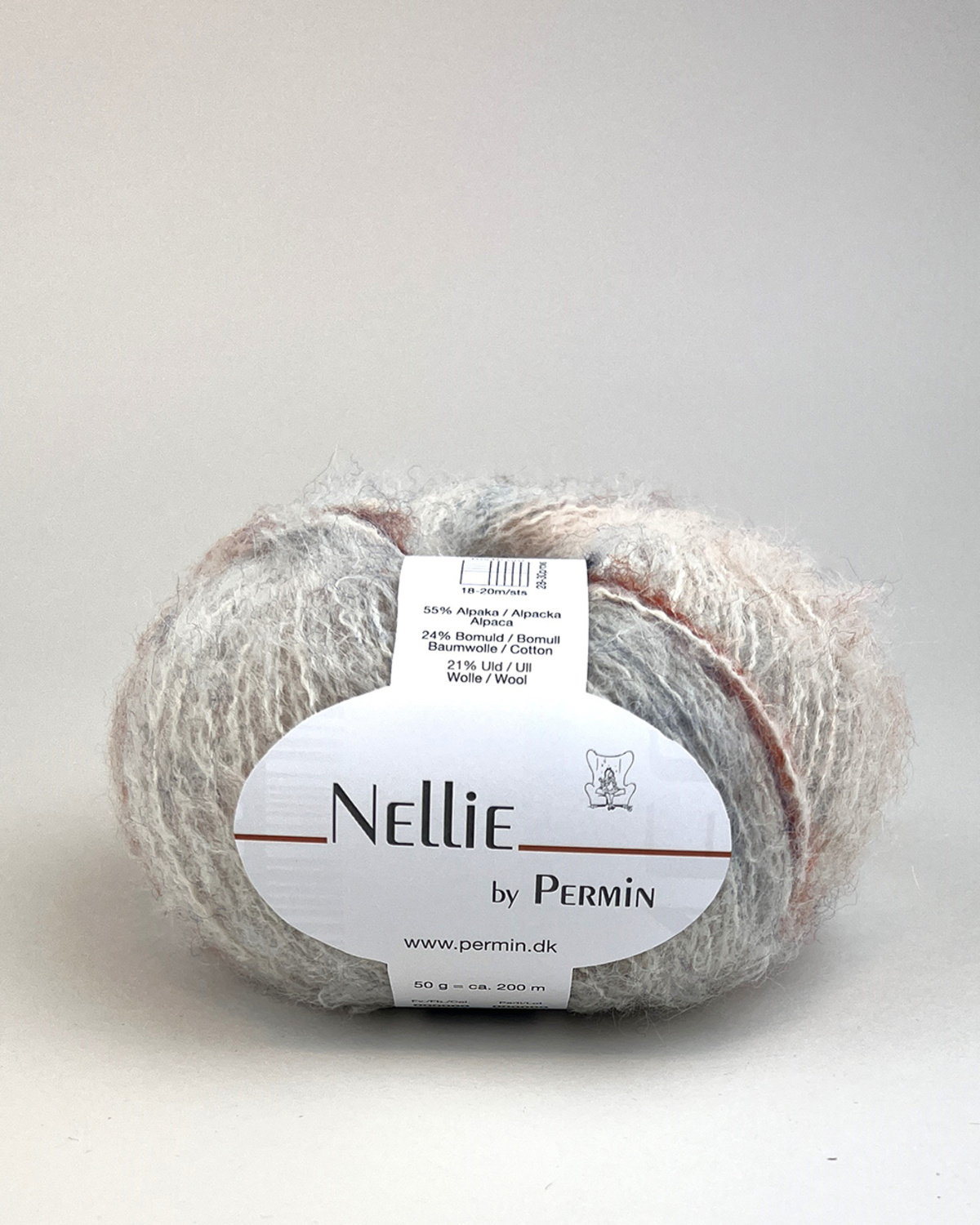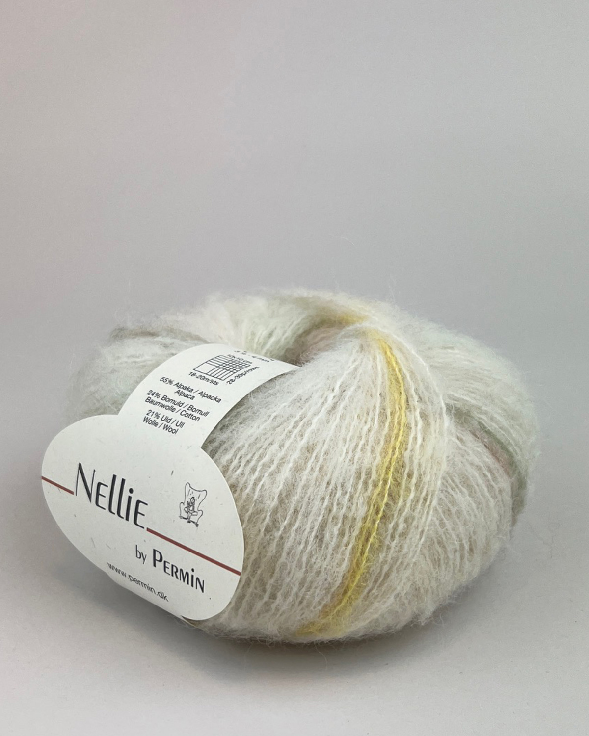 Nellie by Permin er ideelt til strikkeprojekter som sweatre, cardigans, tørklæder og andre accessories, hvor du ønsker et let og varmt resultat. Det kommer i en række smukke, afdæmpede lyse farver men hvert nøgle har en fin stribeeffekt, som gør at ikke to strikkeprojekter bliver ens.