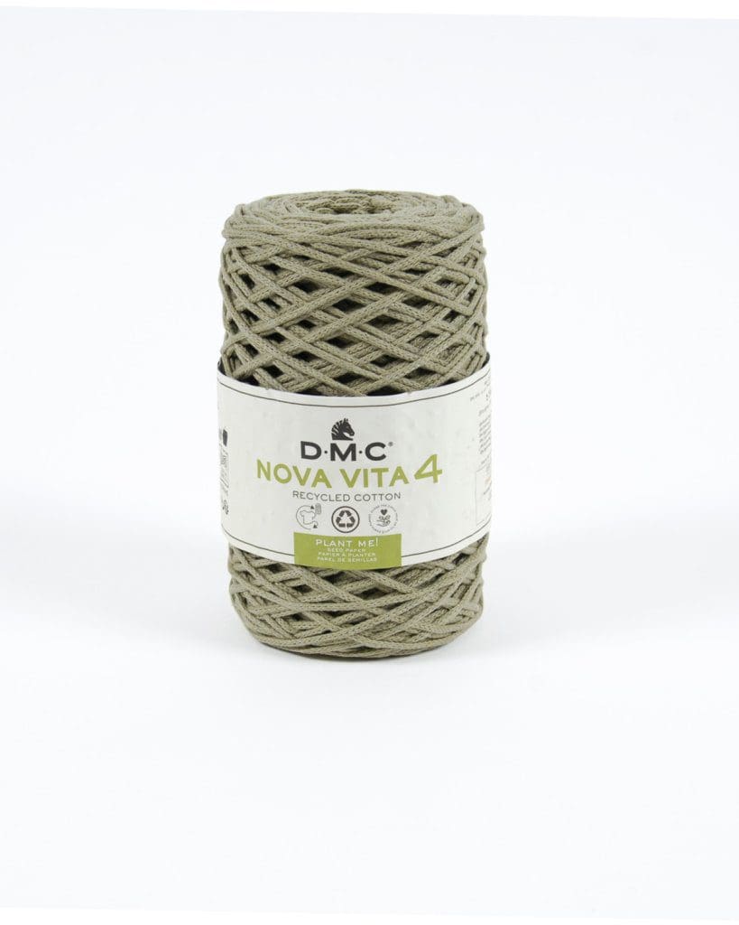 Nova Vita fra DMC er et 100% genbrugsgarn lavet af tekstilaffald. Nova Vita er et rørformet, tykt garn, der er godt til hækling. Garnet er helt perfekt til at lave macrame med, strikke eller hækle boligtilbehør, såsom kurve, urtepotter, puder og lampeskærme. Du kan også kreere bæredygtige tasker og poser.