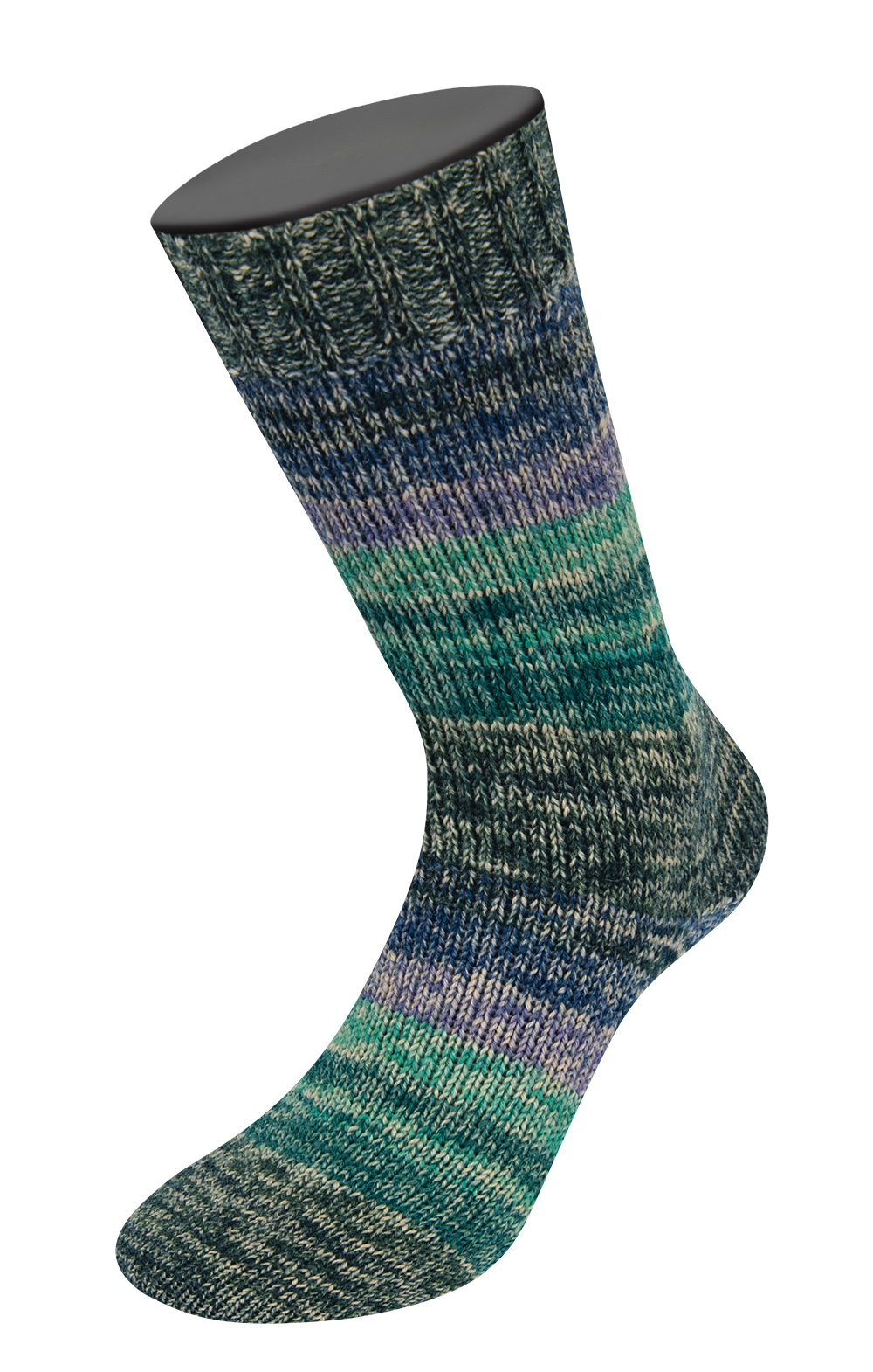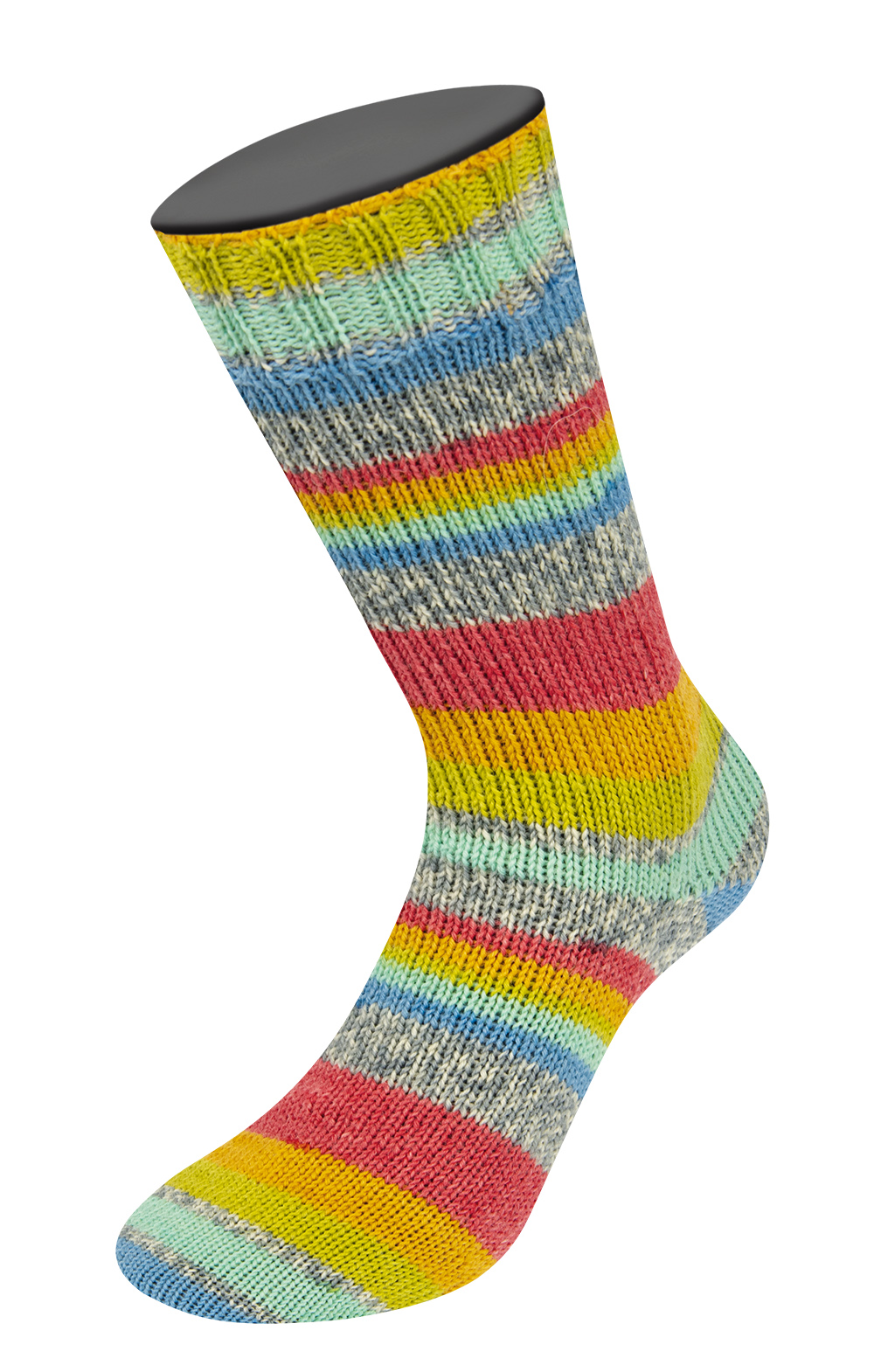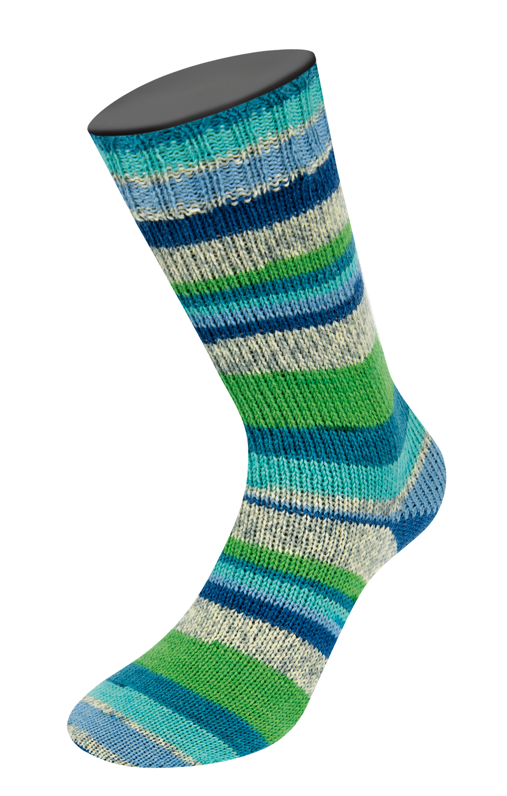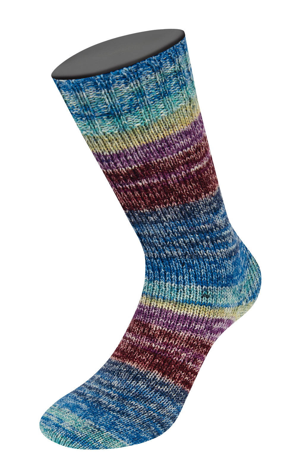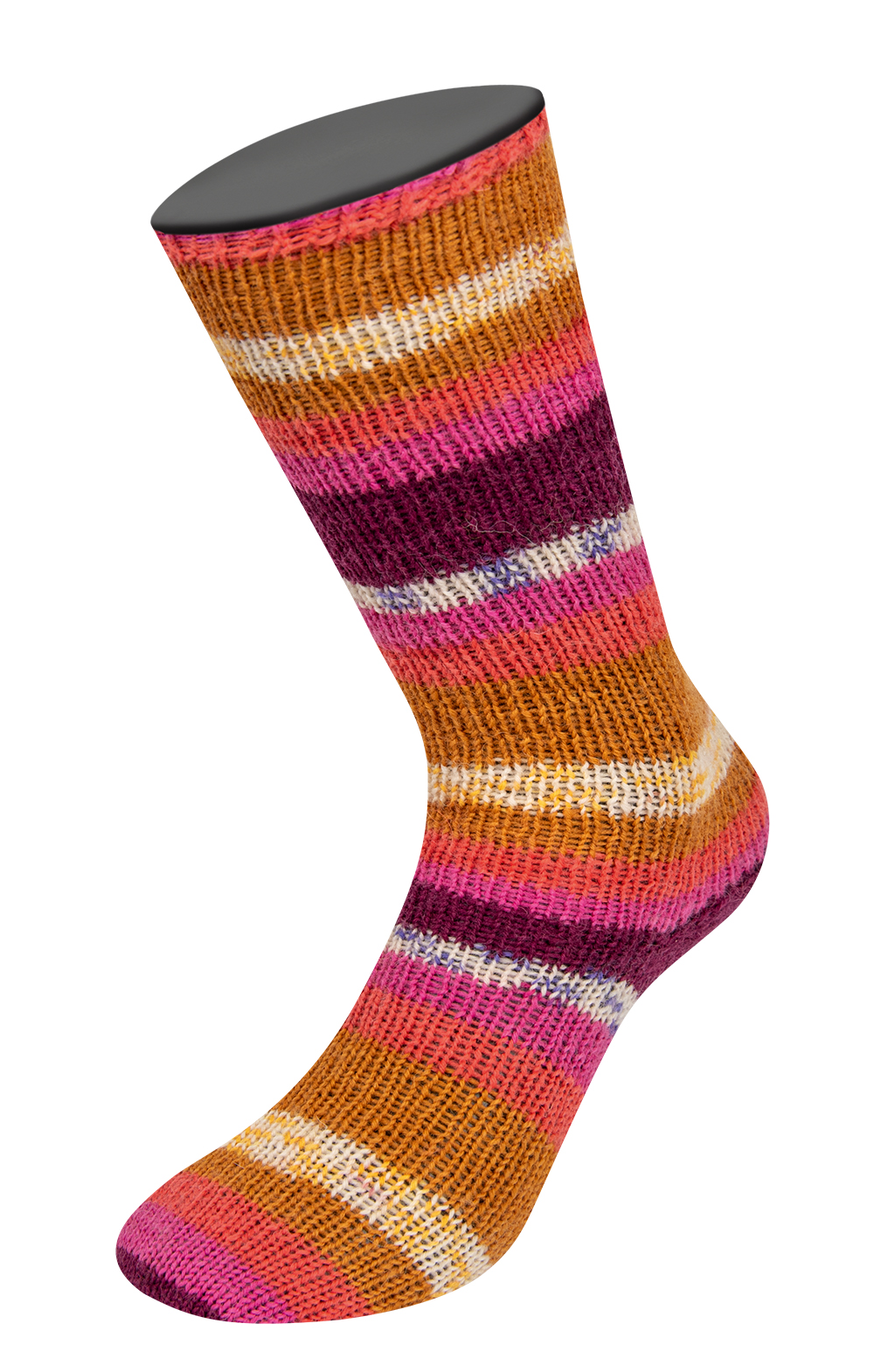 Med Aktion Strømpegarn fra Lana Grossa kan du strikke de fineste og meget dejlige varme strømper. Designet er flerfarvet og selvmønstrende, så du skal bare strikke løs og nyde farvespillet.