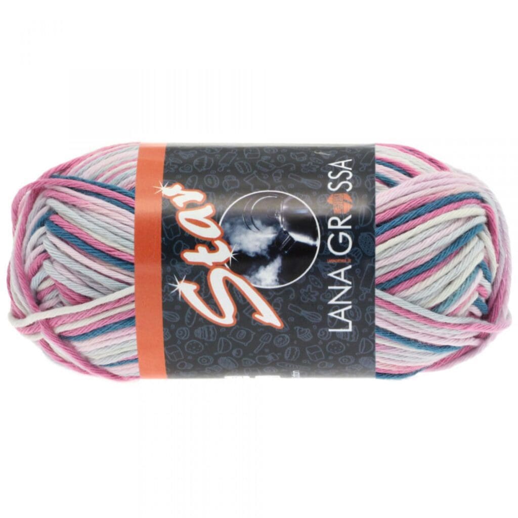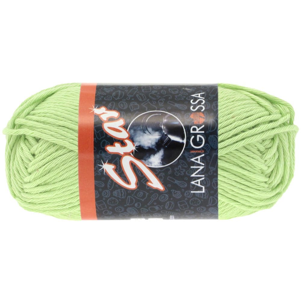 Bomuldsgarnet fra Star fra Lana Grossa er 8/8 bomuldsgarn. Garnet egner sig fantastisk godt til hæklede eller strikkede grydelapper. Star kan bruges til tøj til børn og voksne. Til en damebluse i str. 38-40, skal du regne med ca. 600 gram garn.