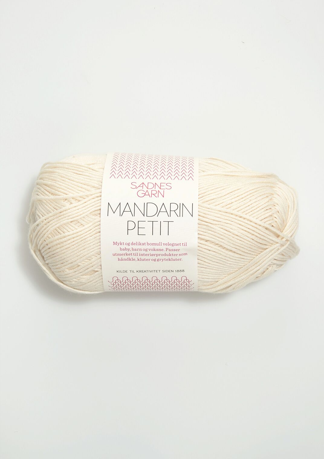 Bomuldsgarnet Mandarin Petit fra Sandnes Garn er 100% plantebaseret bomuldsgarn. Garnet er blødt og slidstærkt og egner sig godt til at strikke beklædning til børn og voksne. Garnet bliver ved med, at holde sig blødt også efter mange gange vask. Der er farver til hver en smag. Der er jordfarver, pastelfarver, pangfarver og helt klare farver. Mandarin Petit egner sig godt til sommerstrik og sommerhækling og til interiørprodukter som håndklæder, viskestykker, grydelapper og puder.