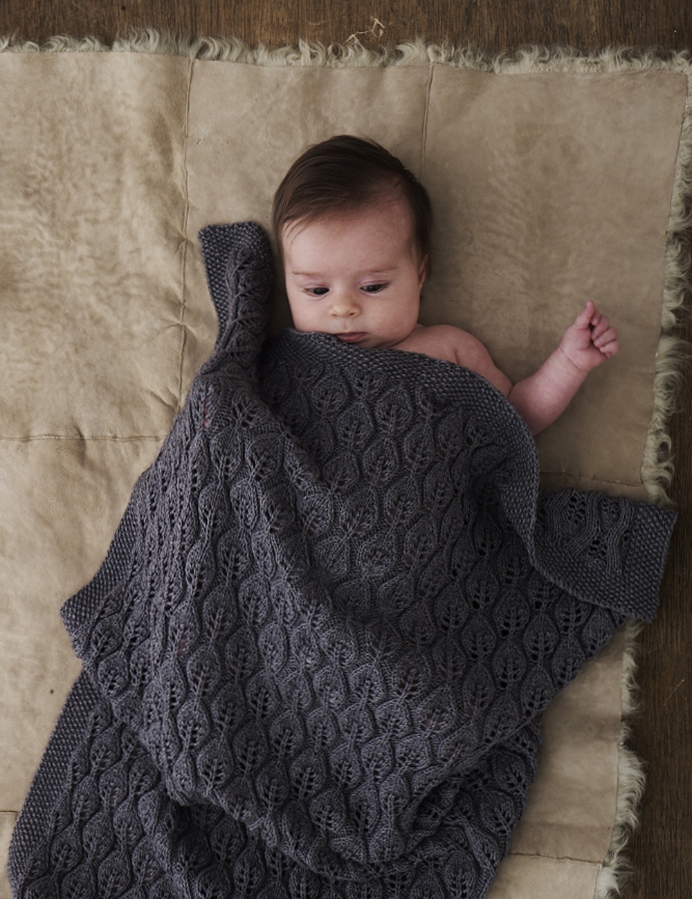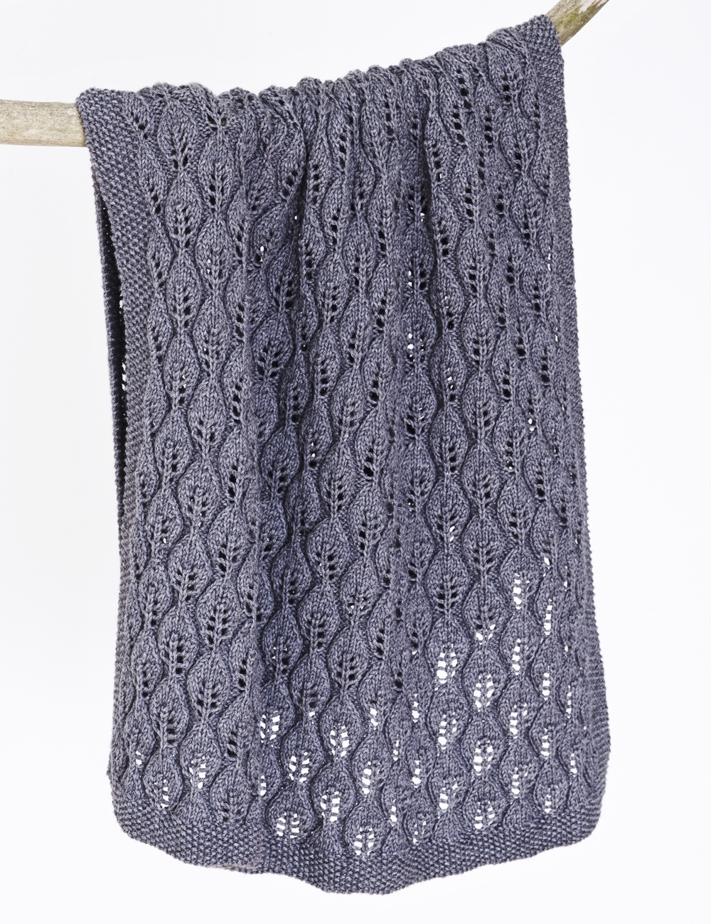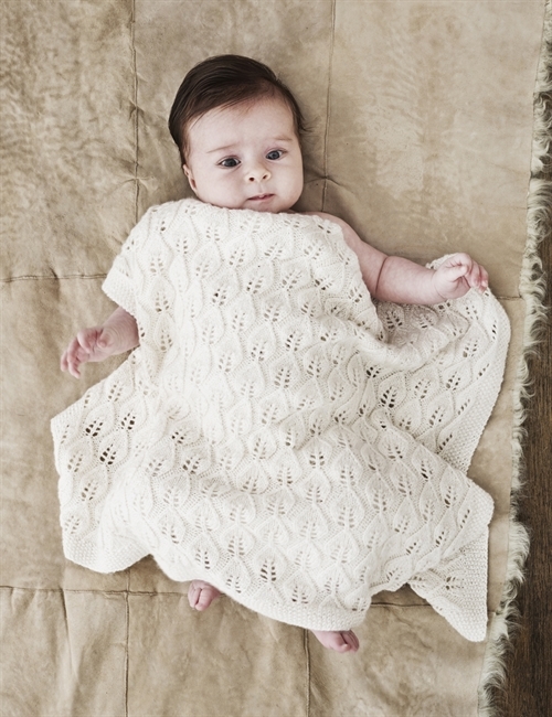 Bella Tæppe – Strikkeopskrift til et smukt babytæppe, som er designet af Lene Holme Samsøe. Tæppet med det fine bladmønster er meget enklere at strikke end du vil tro.