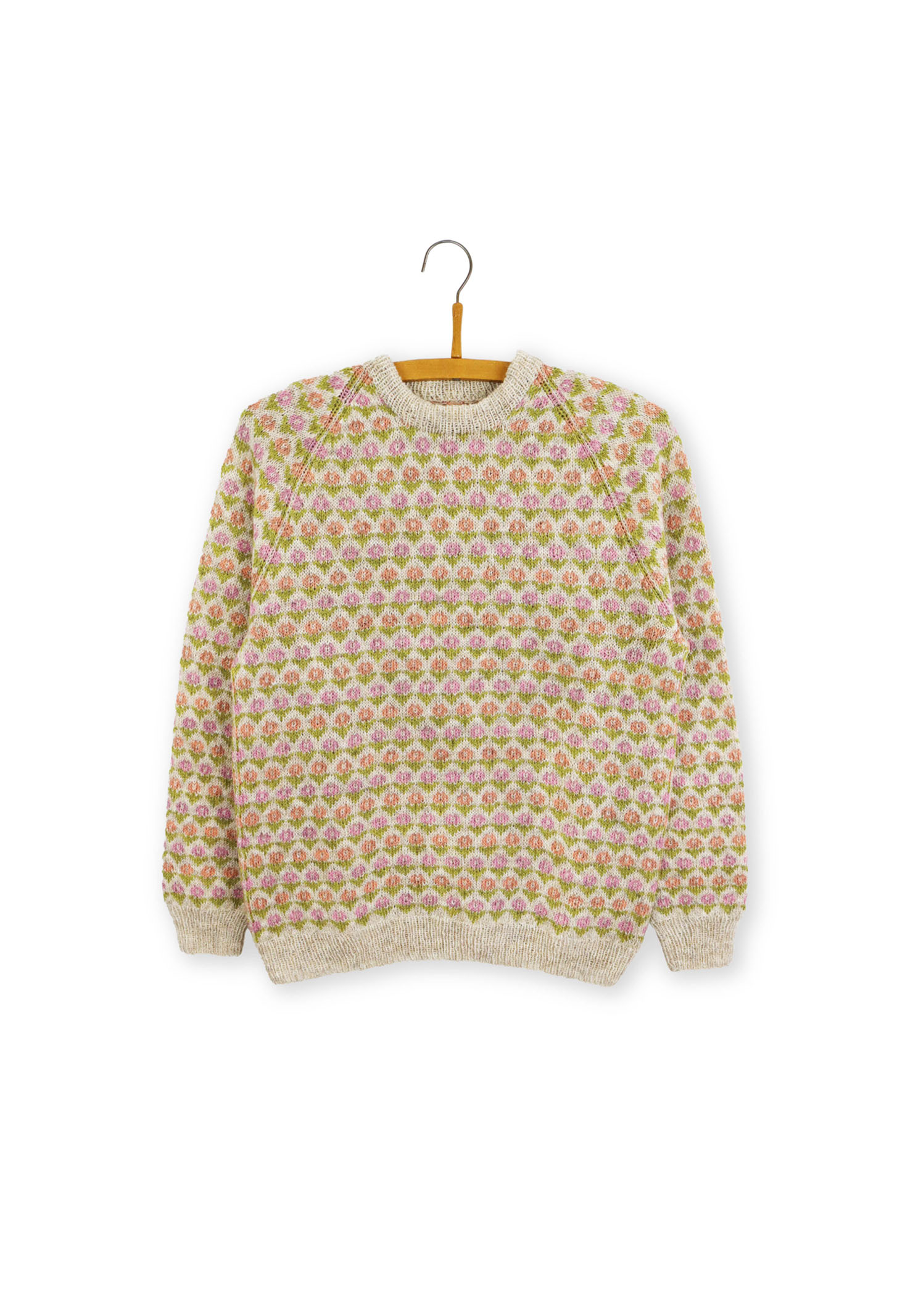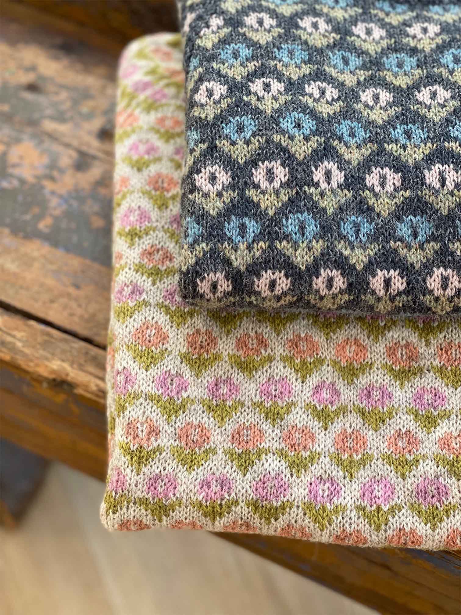 Blomster er en strikkeopskrift designet af Marianne Isager. Sweateren er romantisk og fin med et klassisk blomstermotiv. Sweateren strikkes på rundpind nedefra og op. Krop og ærmer strikkes op til ærmegab, her samles delene og der fortsættes med raglanindtagninger.