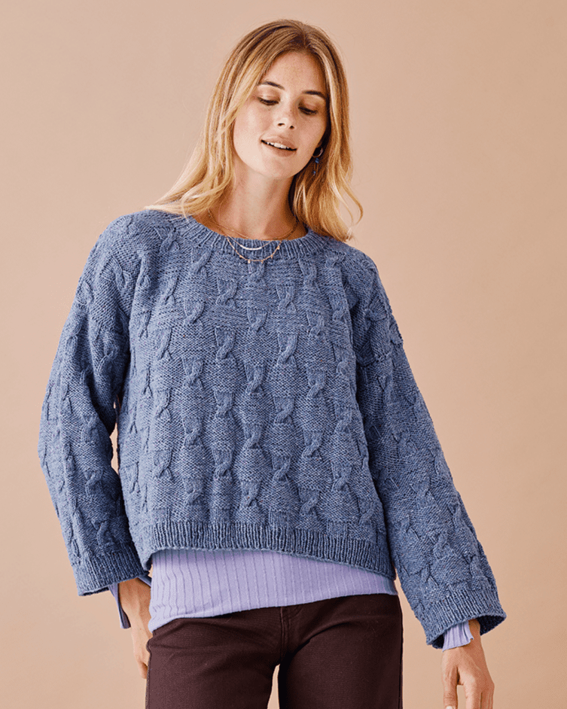 Strikkeopskrift til en bluse med snoningsmønster. Der strikkes nedefra og op, først ryg, derefter forstykke og til sidst 2 ærmer. Der skal strikkes med garnet Luna by Permin.
