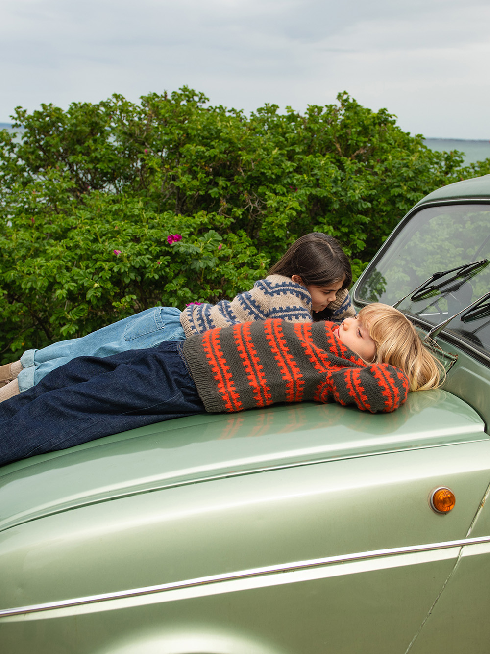 Ridge Sweater Junior – Strikkeopskrift i Double Sunday er en blød og varm sweater med et smukt, tredimensionelt mønster i Børstet Alpakka. Den strikkes oppefra og ned med raglanudtagninger, og arbejdet deles undervejs til ærmer og krop. En dejlig model til dig, der holder af fine detaljer og en god pasform.