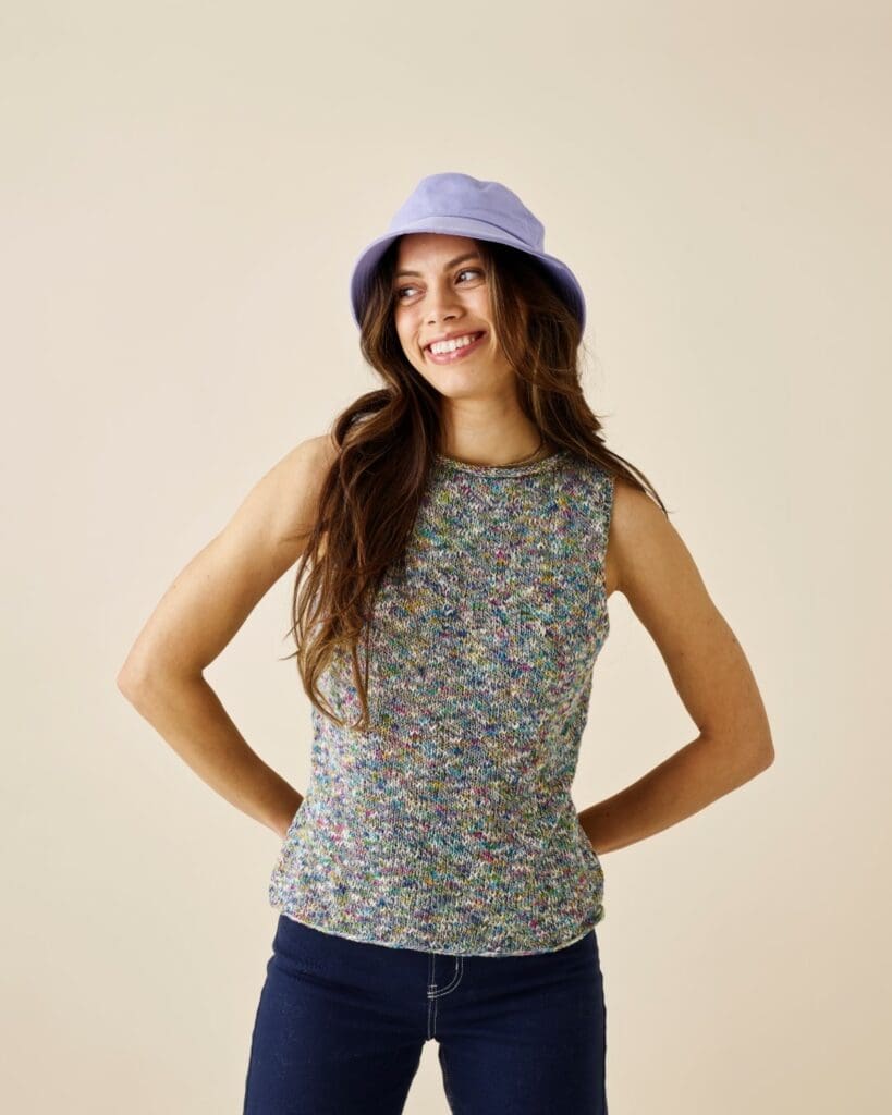 Strikkeopskrift til en sommertop. Der skal strikkes med garnet Iris by Permin som består af viskose, bomuld og hør.