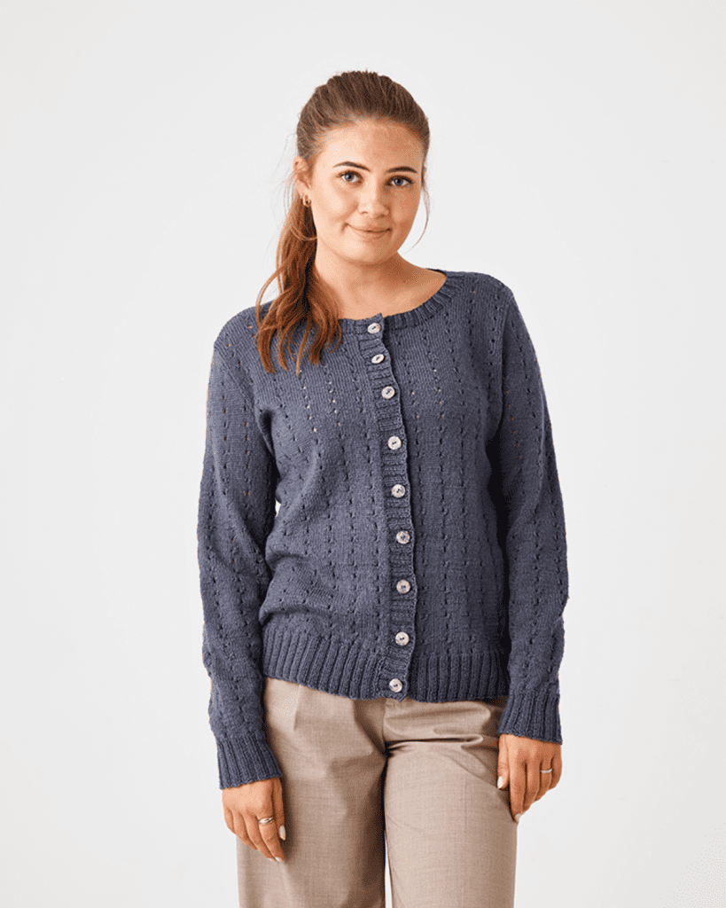 Strikkeopskrift til en let loose trøje med hulmønster. Trøjen strikkes nedefra og op med garnet Lillemor by Permin.