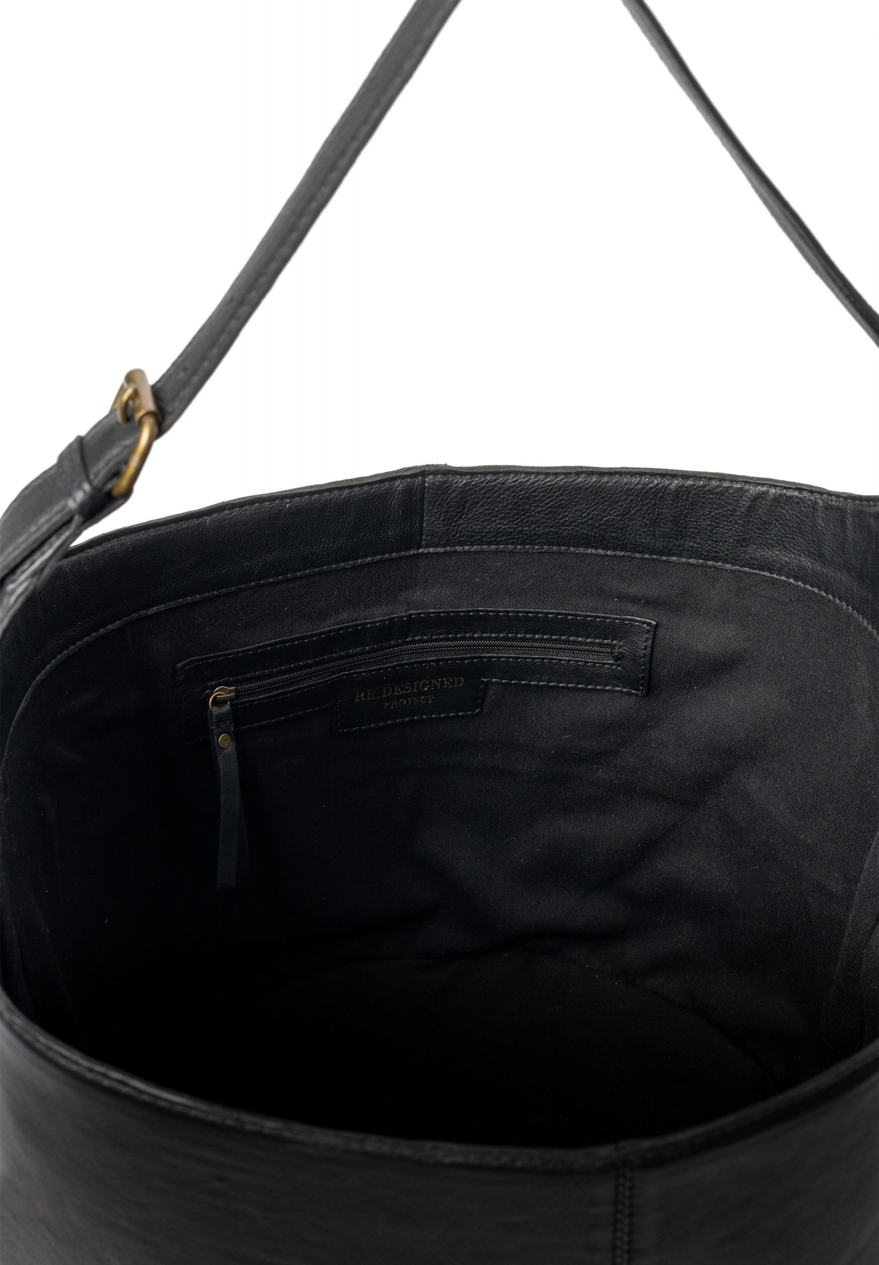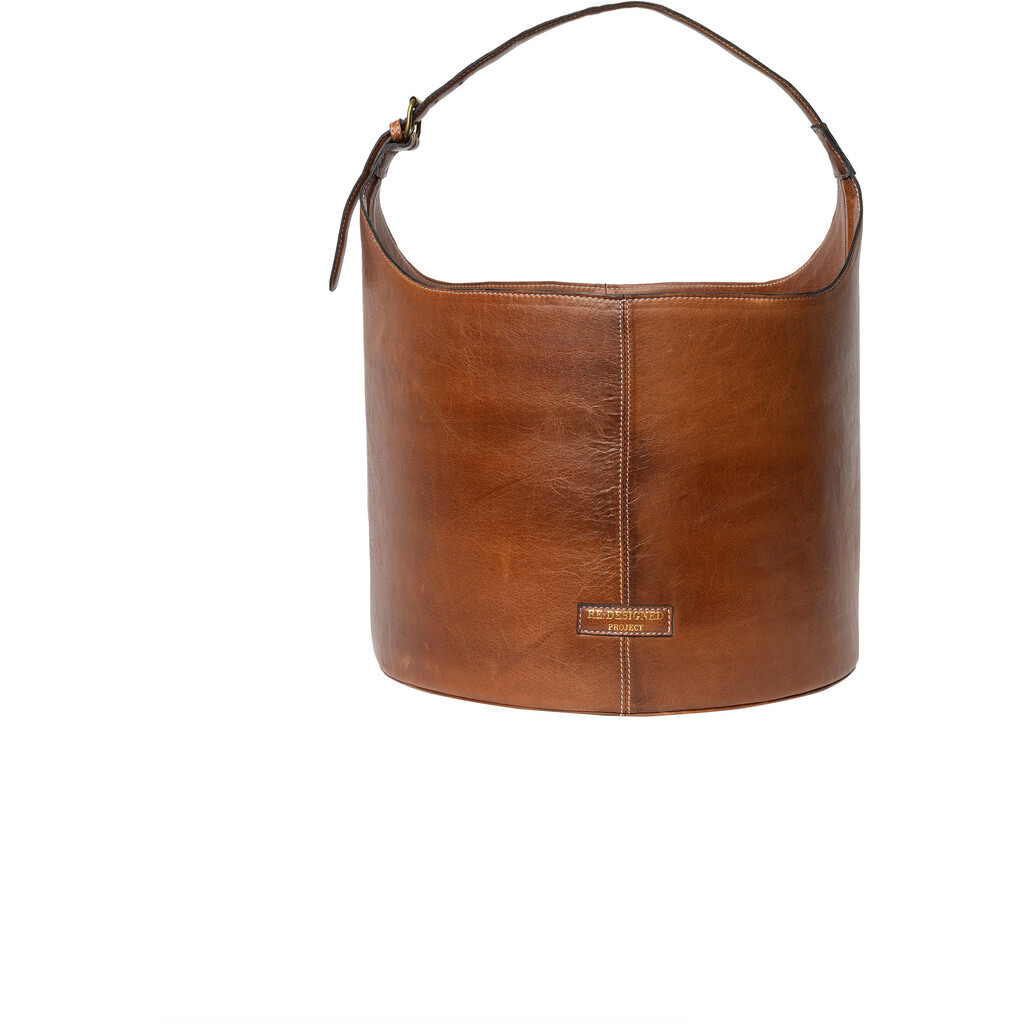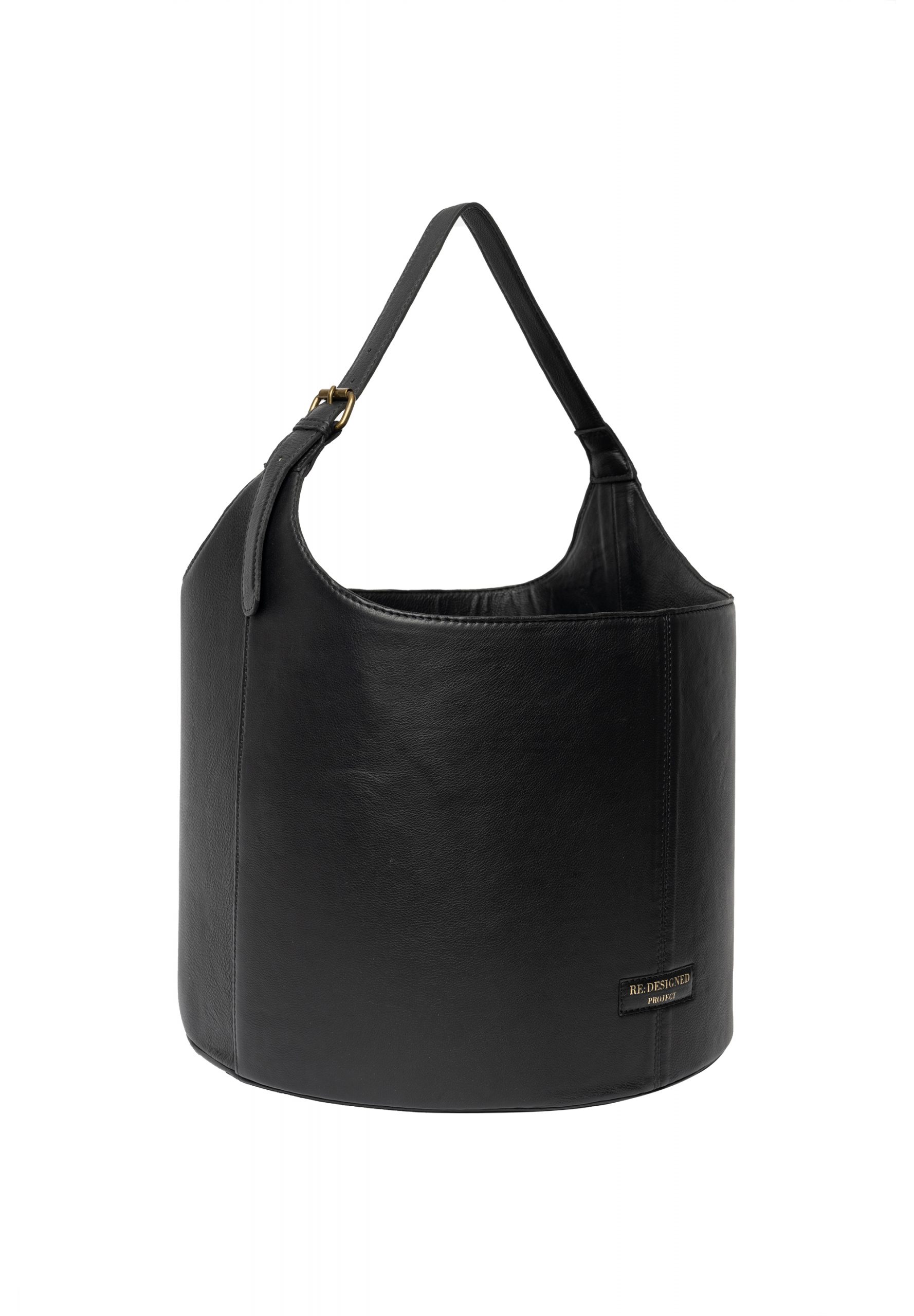Project 27 – Stor opbevaringsspand i læder er fremstillet i Re:designs Urban læderkvalitet – et valset okseskind, hvor hver taske farves, før overfladen færdiggøres, hvilket bevarer det originale strukturmønster i det rå læder. Efter farvning påføres en let voks, hvilket giver en glat og blød finish med unikke detaljer.