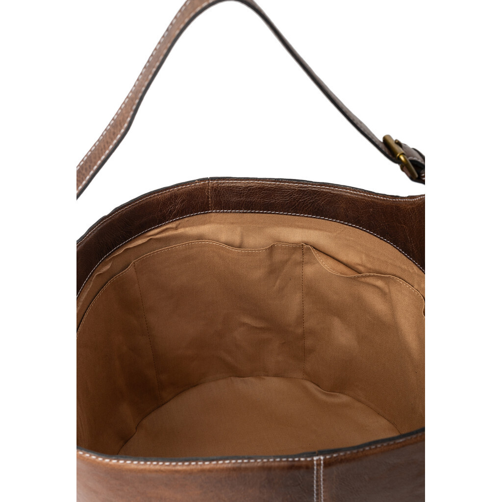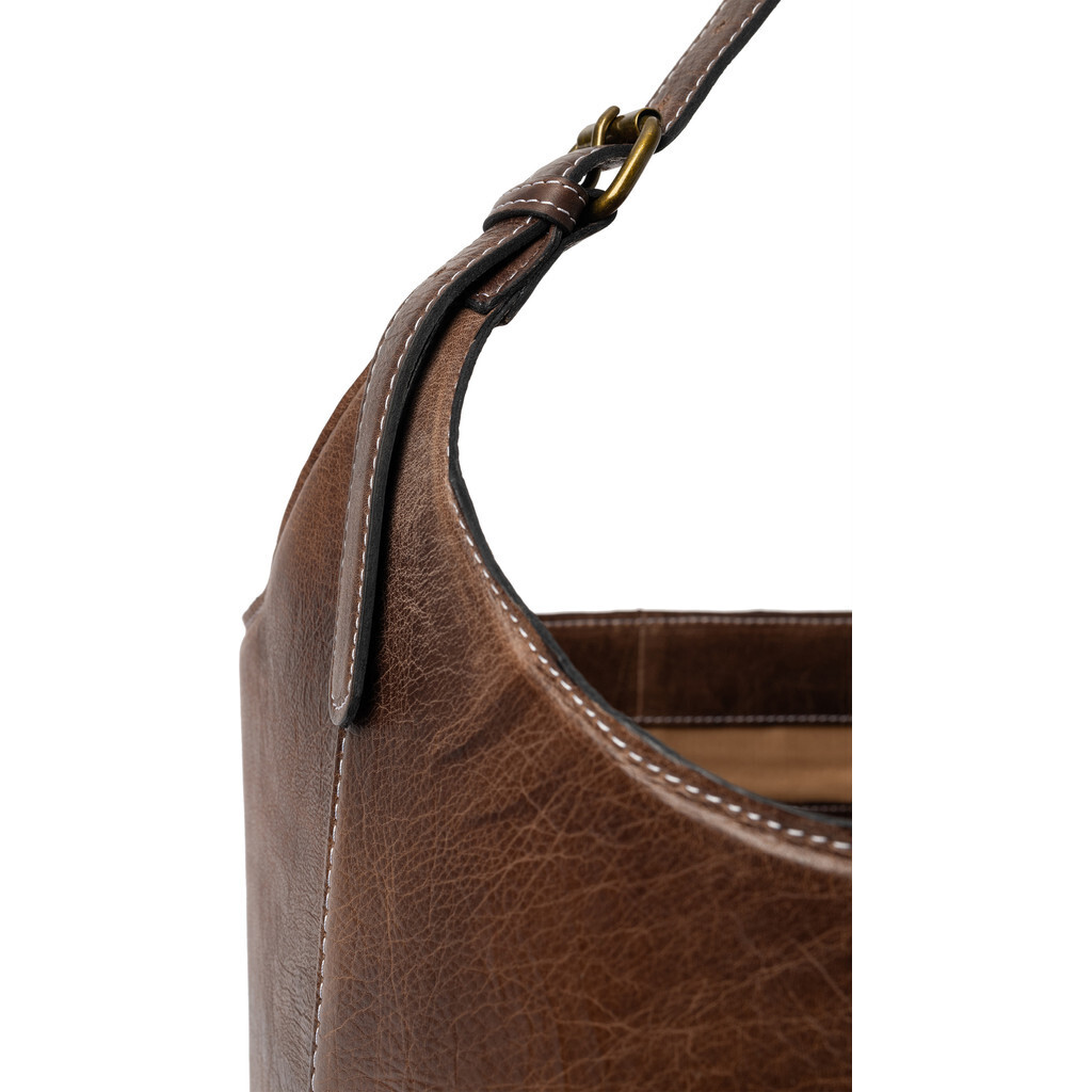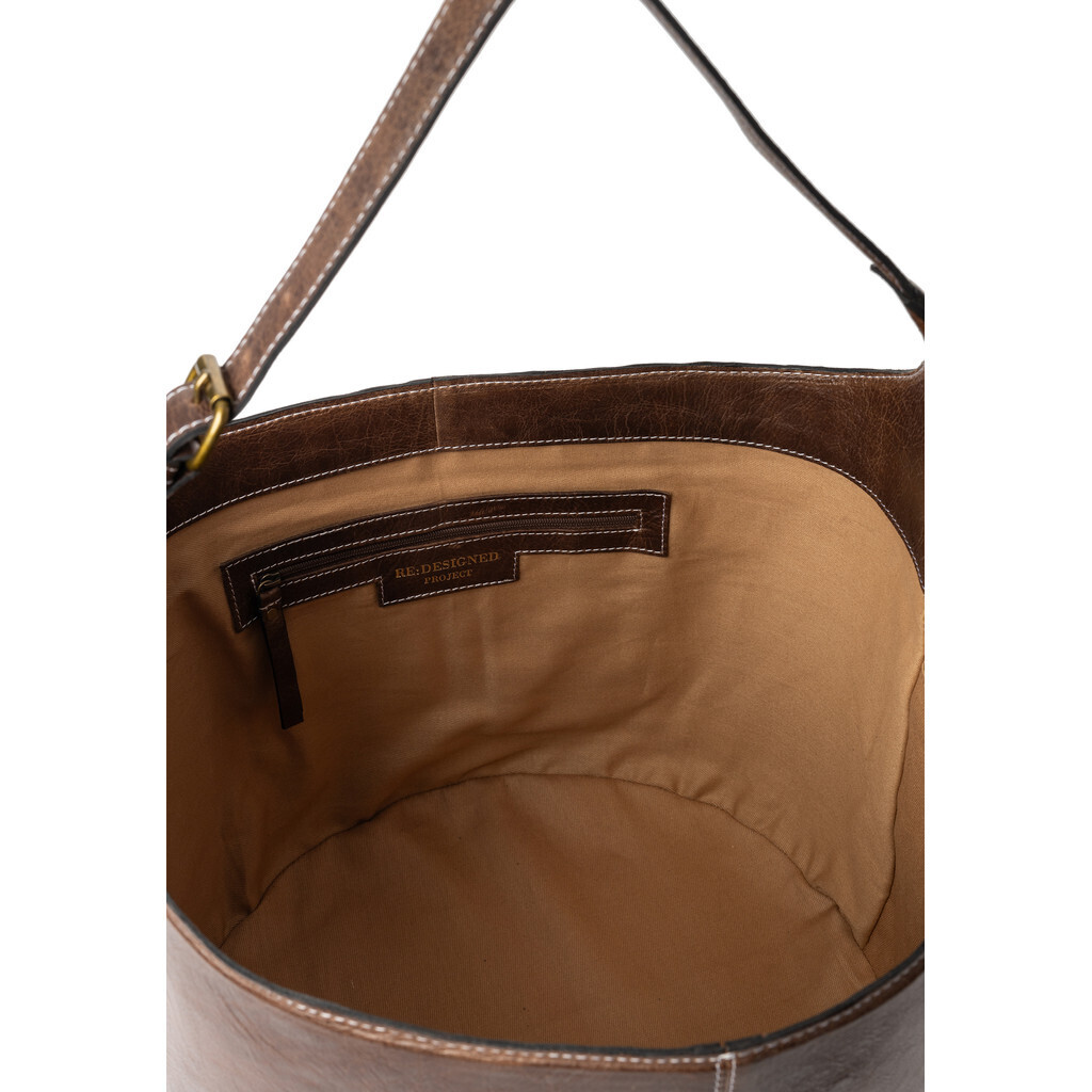 Project 27 – Stor opbevaringsspand i læder er fremstillet i Re:designs Urban læderkvalitet – et valset okseskind, hvor hver taske farves, før overfladen færdiggøres, hvilket bevarer det originale strukturmønster i det rå læder. Efter farvning påføres en let voks, hvilket giver en glat og blød finish med unikke detaljer.