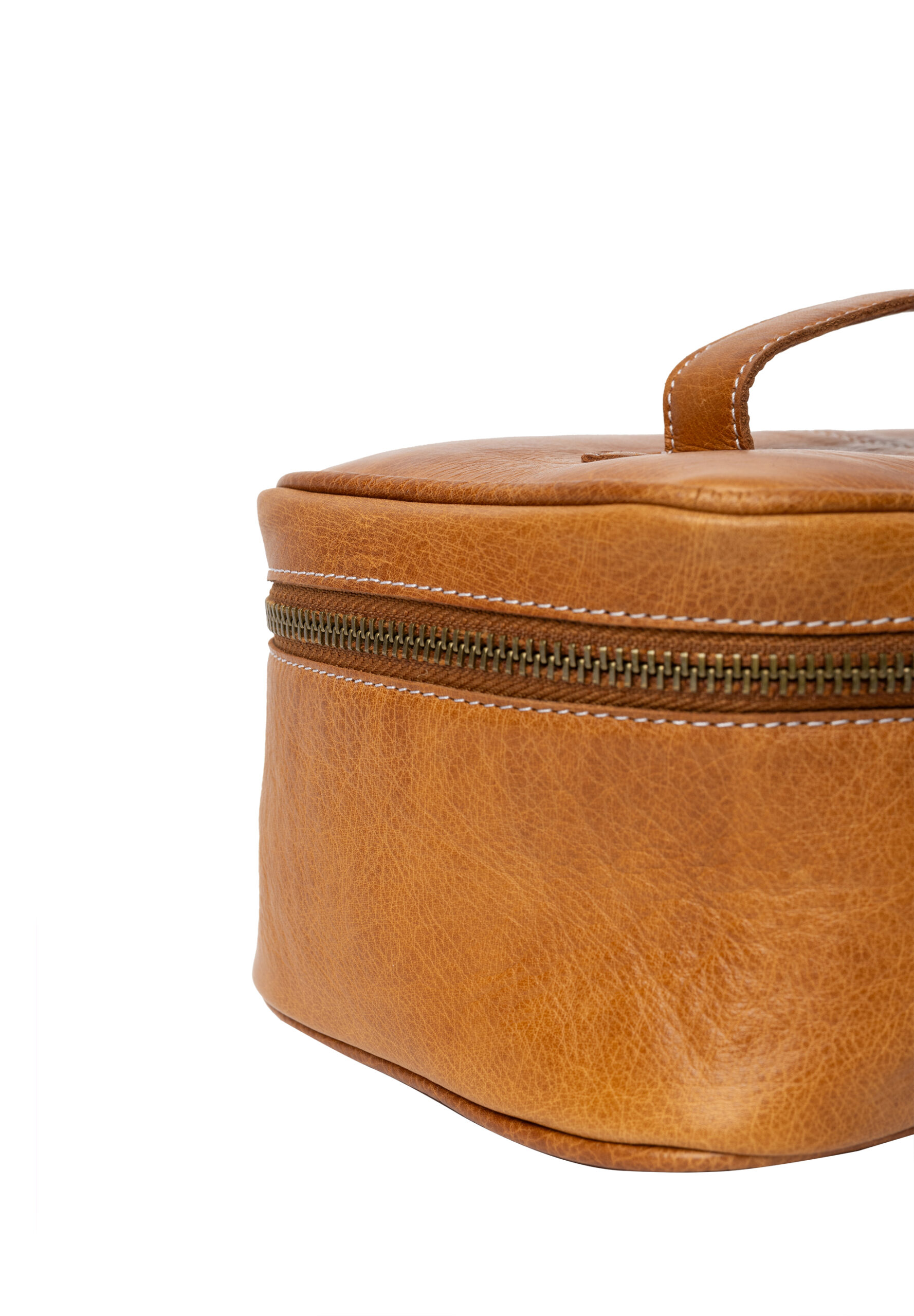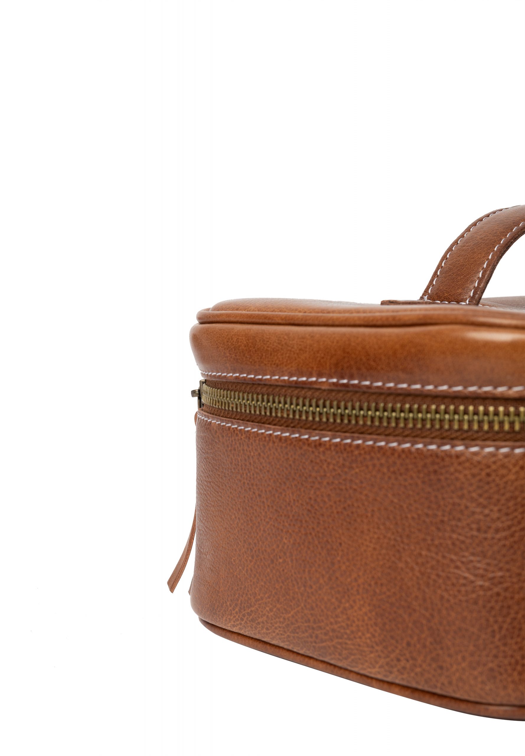 Fremstillet i vores Re:designeds’s læderkvalitet – et valset okseskind, hvor hver taske er farvet før overfladen er færdigbehandlet, hvilket bevarer det originale strukturmønster af det rå læder. Efter taskerne er blevet farvet, påføres der let voks, hvilket efterlader en glat og blød finish med unikke detaljer.
