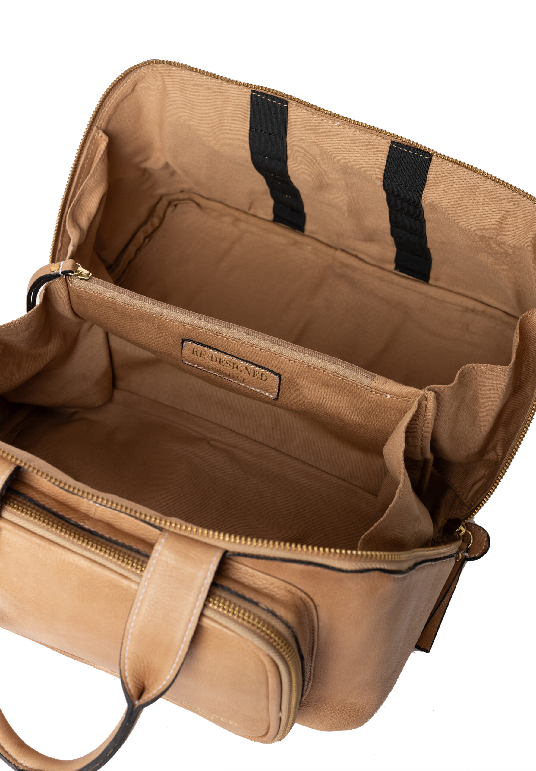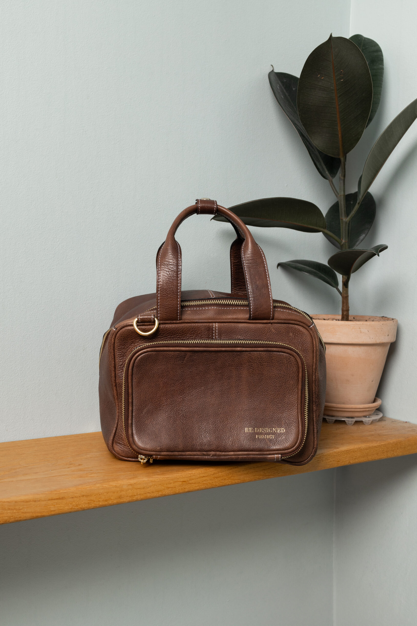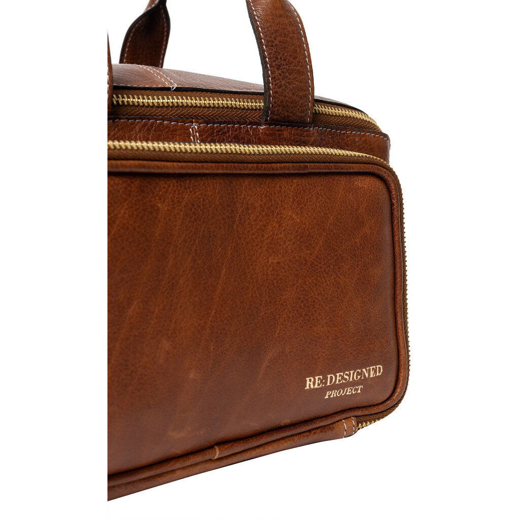 Project 39 – er en stor projekttaske fra Re:design, som er fremstillet af okselæder. Tasken er en stilfuld og rummelig projekttaske med utrolig meget plads trods dens lille størrelse. Dette er virkelig en lækker kvalitetstaske, som også er produceret med førsteklasses materialer, såsom robuste gyldne karabinhager til skulderremmen og en kraftig gylden udvendig lynlås.