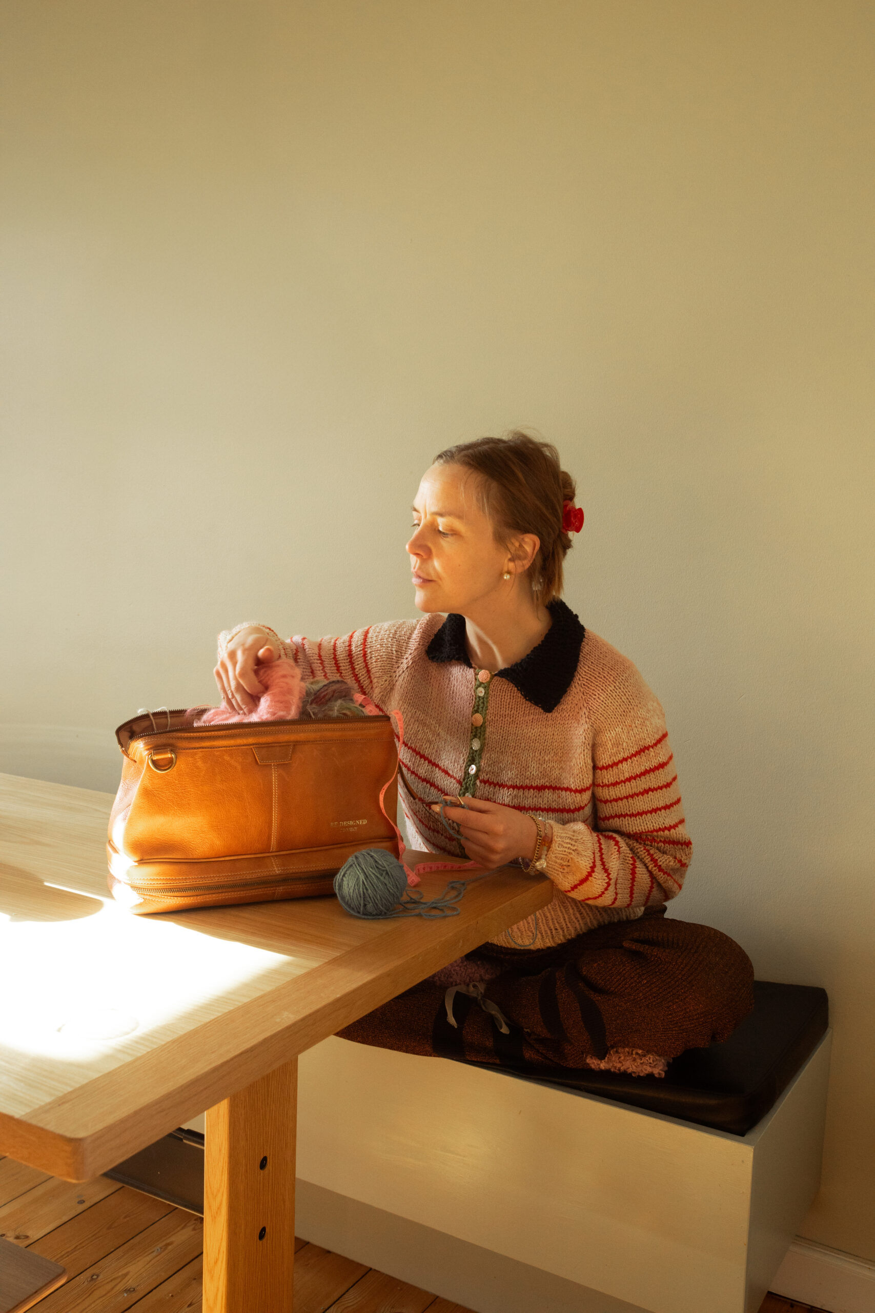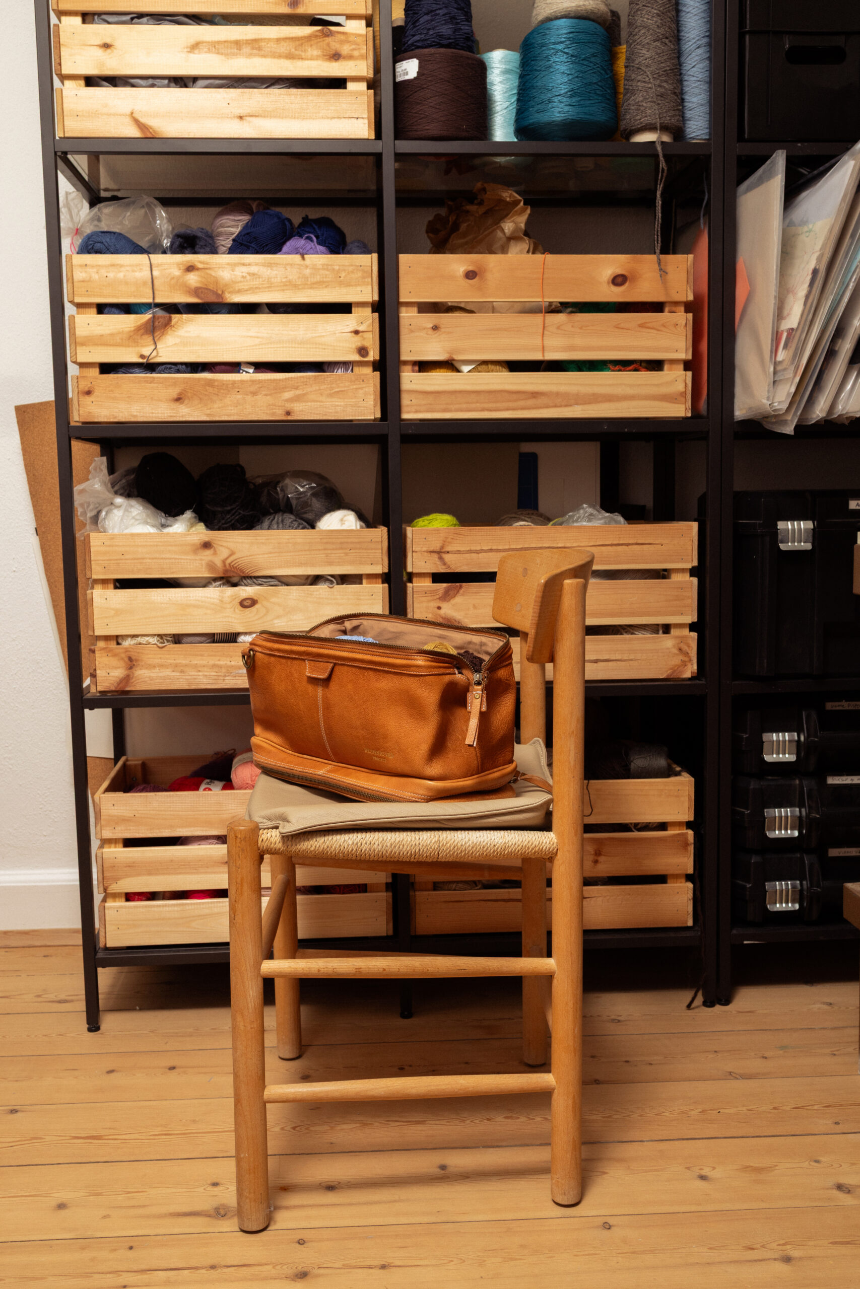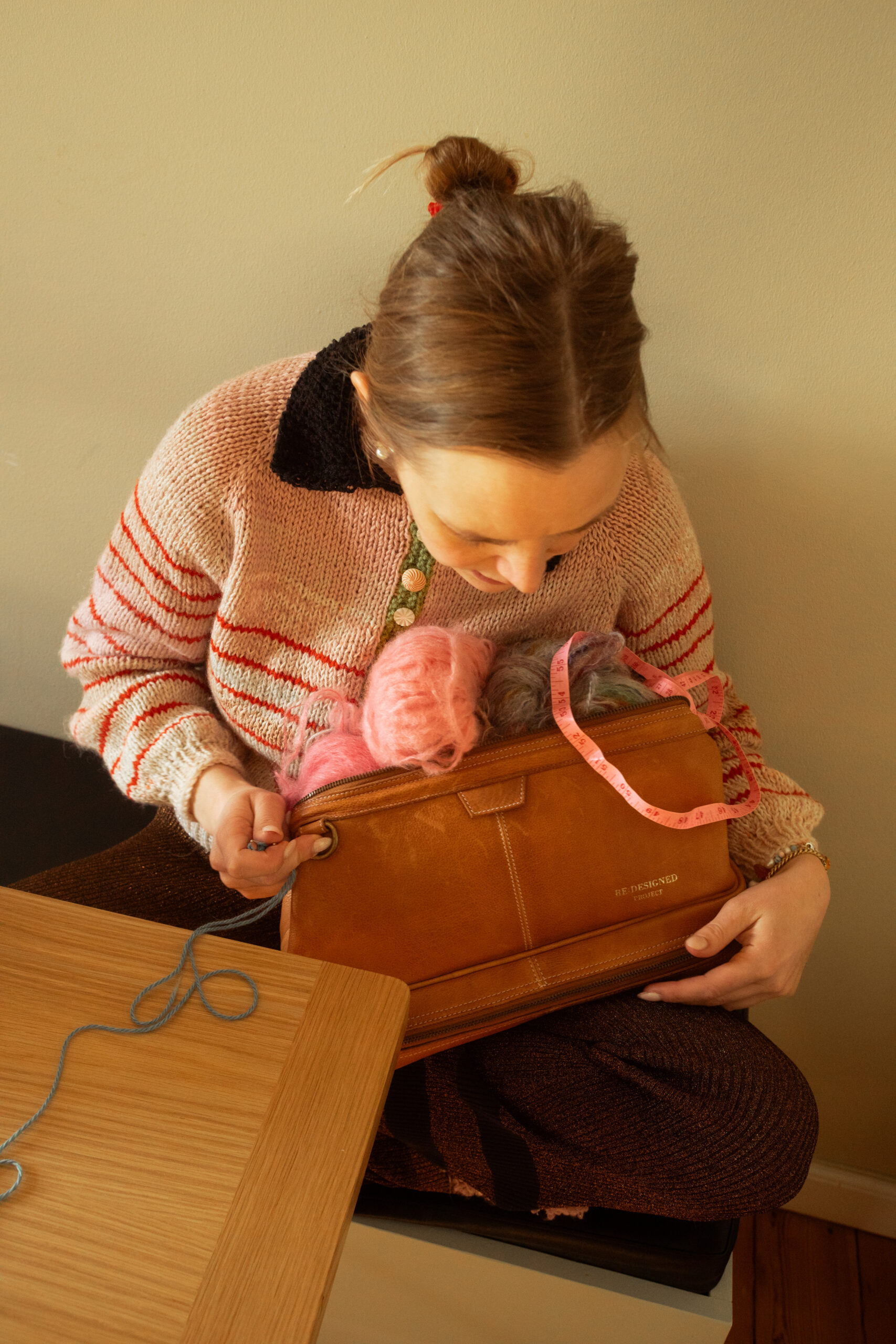 Project 45 – Luksus strikketaske fra Re:Designed. Projekt 45 er den ultimative kombination af stil og funktionalitet, skabt til dig, der elsker at strikke. Den elegante taske, designet i klassisk lægestil, er fremstillet af førsteklasses læder og tilbyder smarte løsninger til dine strikkeprojekter.